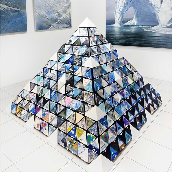 Alle eingereichten Kunstwerke werden zu einer massiven Eisbergskulptur zusammengefügt, symbolisch für die Zerbrechlichkeit der Polarregionen unseres Planeten.